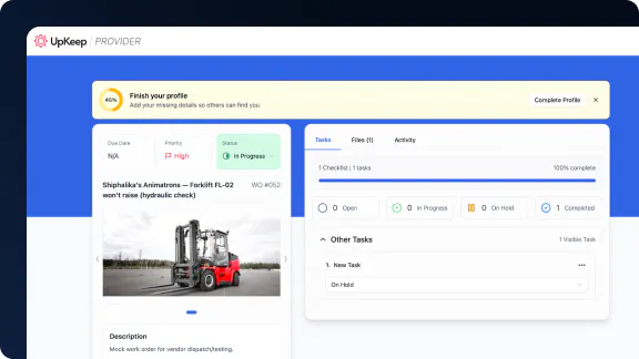 UpKeep Providers is built directly into UpKeep's CMMS platform. It's available on Professional and Enterprise plans at no additional per-provider cost. If you're already using UpKeep, Providers integrates seamlessly with your existing work orders and workflows.